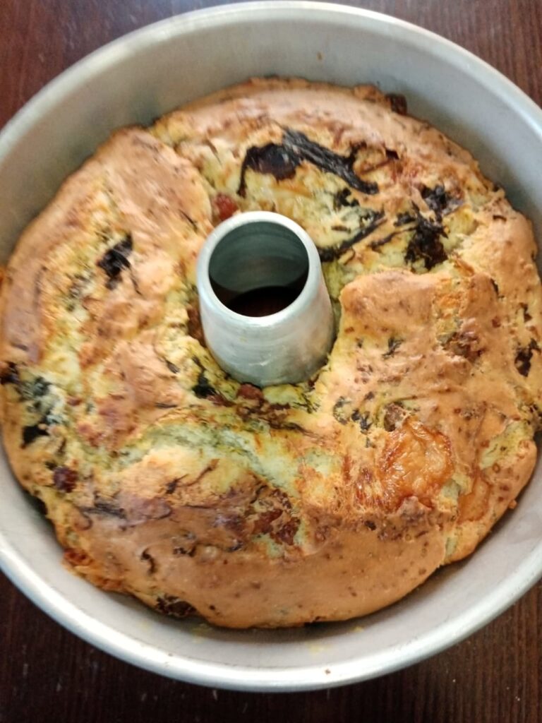Impastare ancora qualche minuto energicamente e lasciatela riposare ancora un’ora direttamente in un ruoto circolare per ciambella che avrete imburrato e infarinato. Infornare x 40 min a 180 gr .